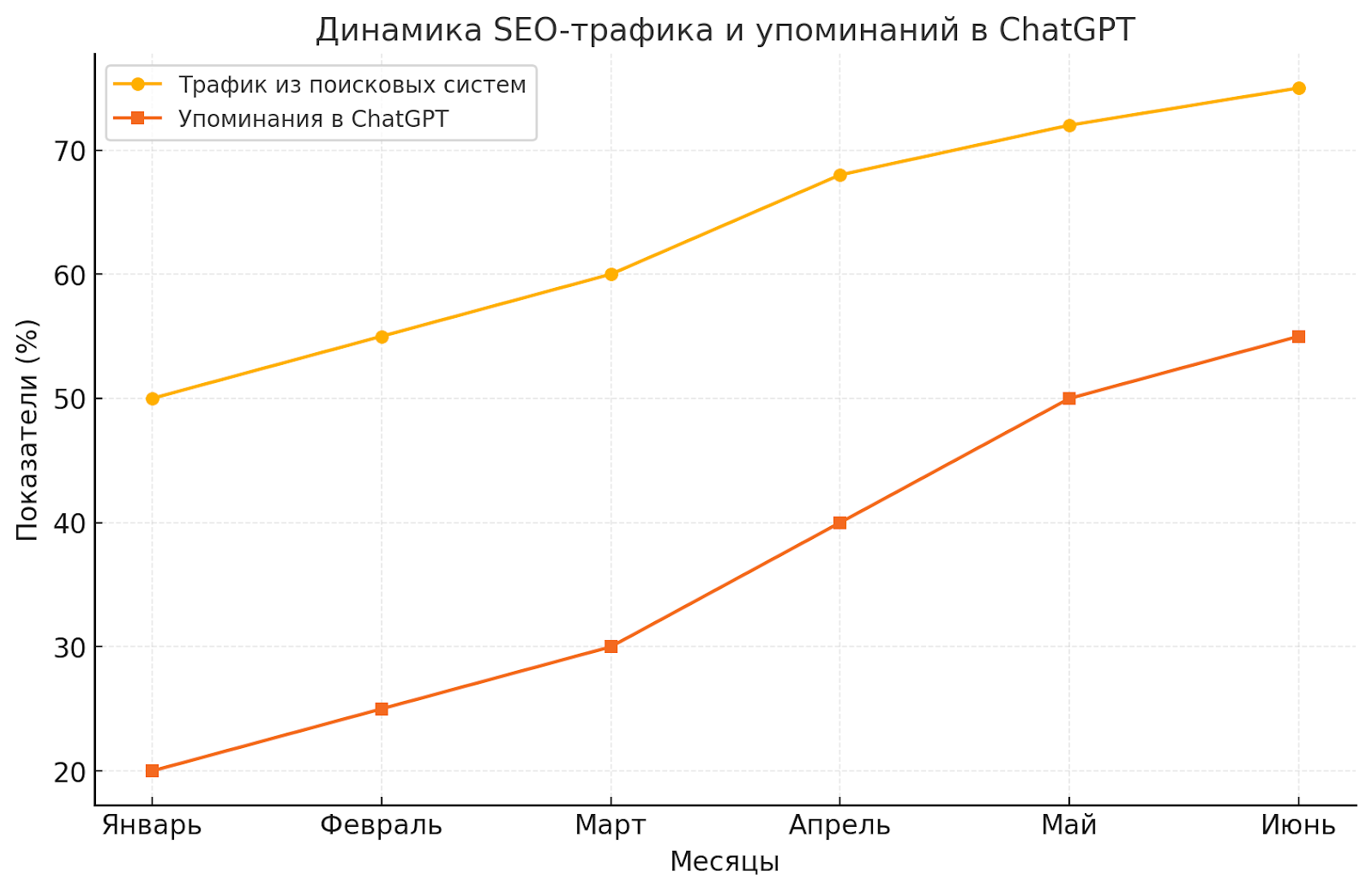 Главная цель ИИ — дать пользователям быстрый и релевантный ответ. Поэтому, если ваш сайт предоставляет качественную информацию, это увеличивает вероятность того, что бренд будет упомянут в ответах, генерируемых ChatGPT.