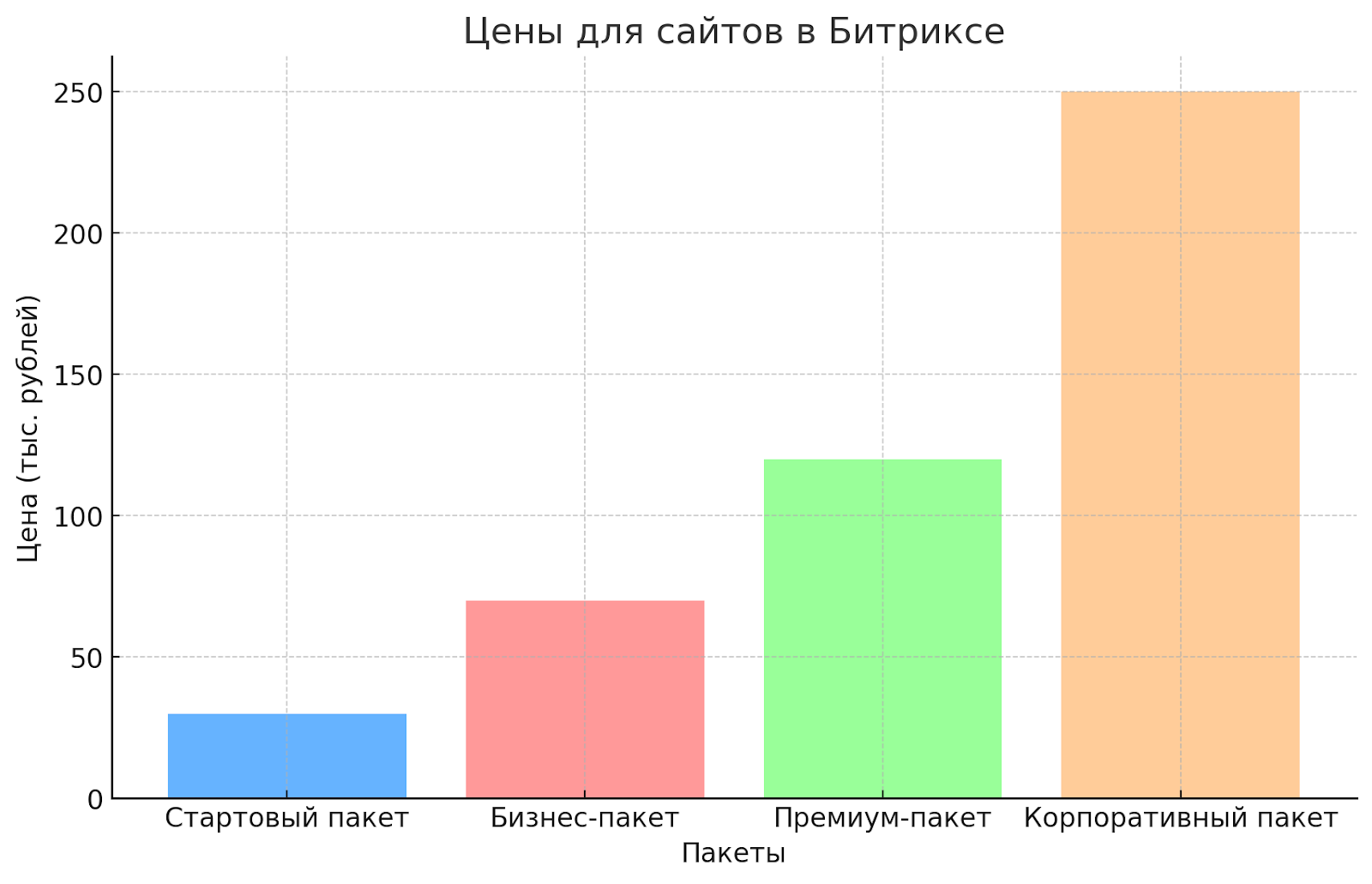 2. Диапазон цен на разработку сайта на 1C-Битрикс